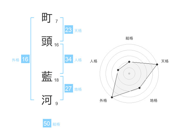 町頭 藍河さんを姓名の画数から五運を鑑定