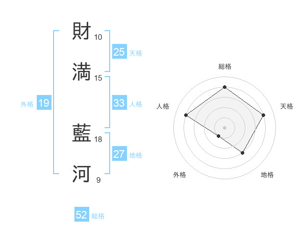 財満 藍河さんの総格は52画の4点!