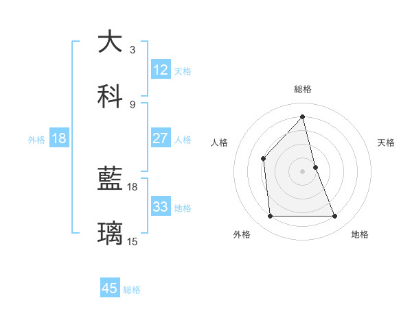 大科 藍璃さんを姓名の画数から五運を鑑定