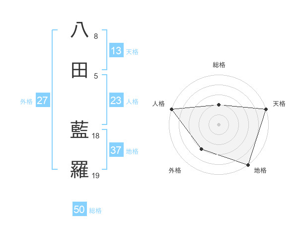 八田 藍羅さんを姓名の画数から五運を鑑定