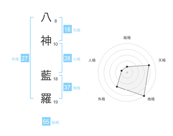 八神 藍羅さんの総格は55画の1点!