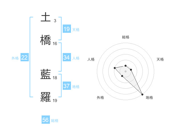 土橋 藍羅さんを姓名の画数から五運を鑑定