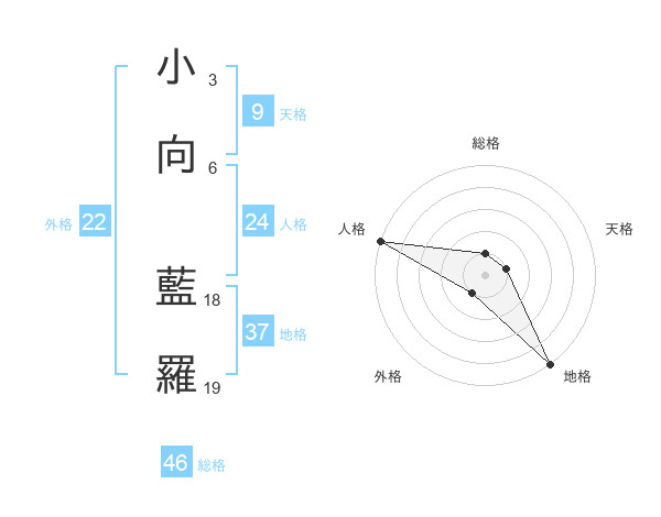 小向 藍羅さんを姓名の画数から五運を鑑定