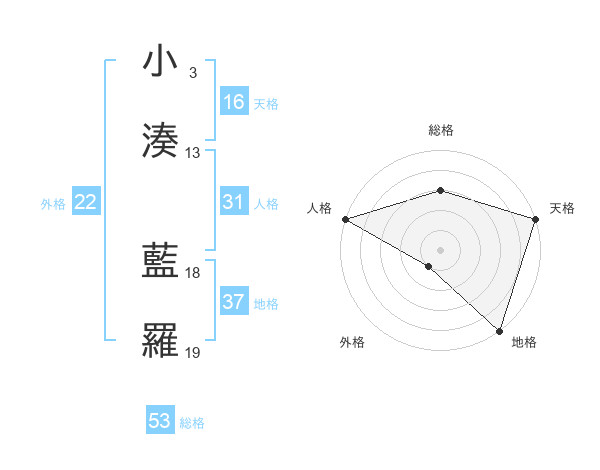 小湊 藍羅さんを姓名の画数から五運を鑑定