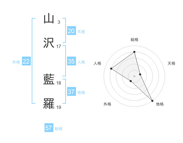山沢 藍羅さんの天格は20画の1点!