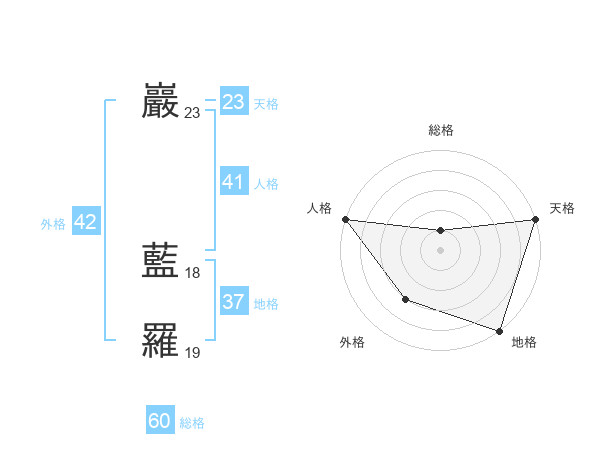 巖 藍羅さんの天格は23画の5点!