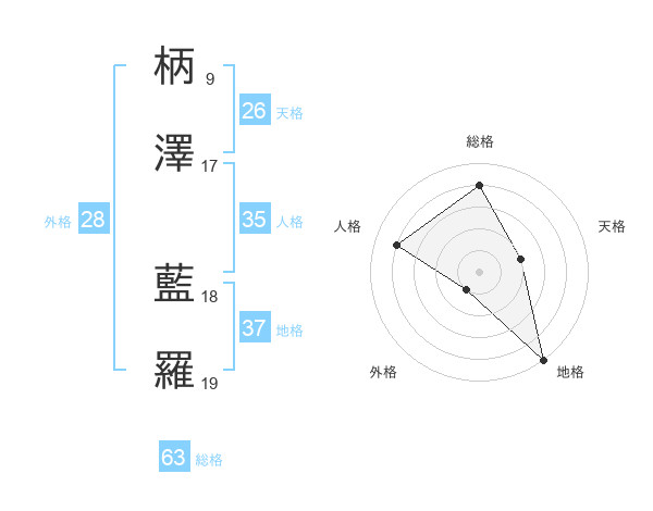 柄澤 藍羅さんの総格は63画の4点!
