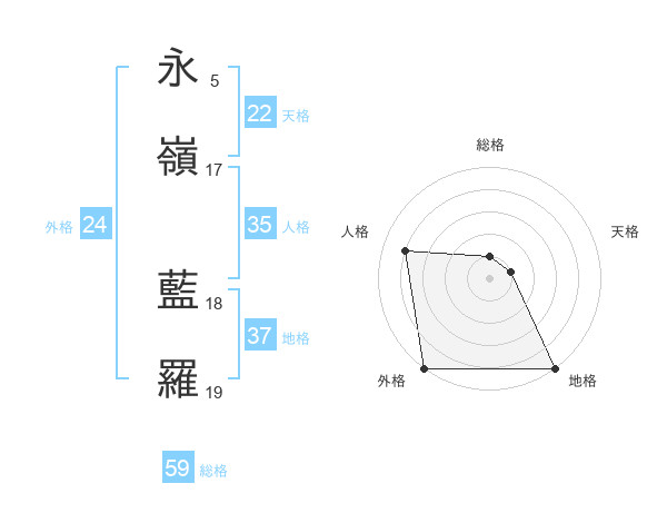 永嶺 藍羅さんの外格は24画の5点!
