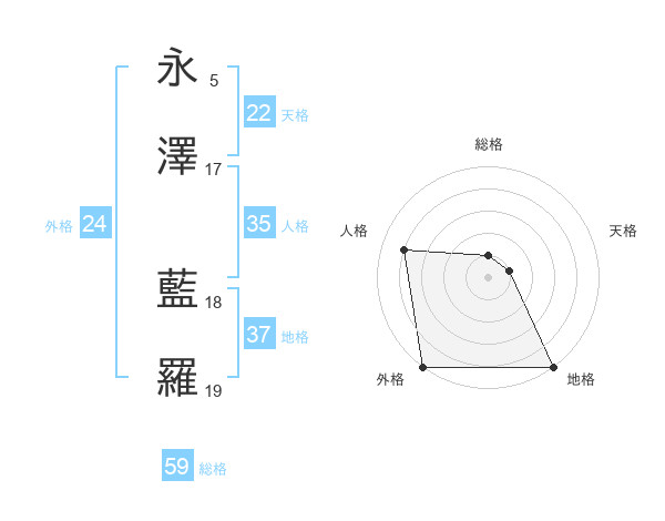 永澤 藍羅さんを姓名の画数から五運を鑑定