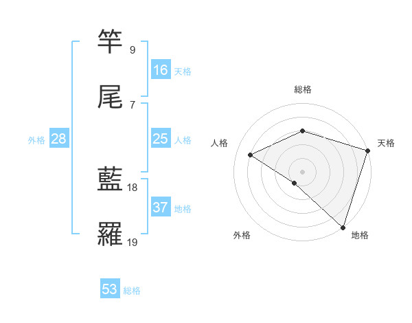 竿尾 藍羅さんの総格は53画の3点!