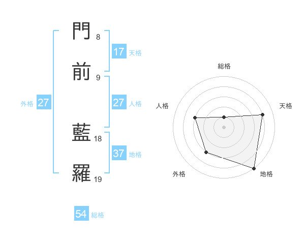 門前 藍羅さんを姓名の画数から五運を鑑定