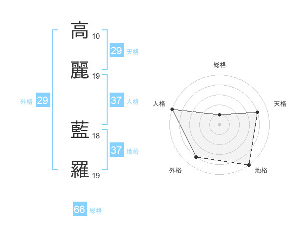 高麗 藍羅さんの総格は66画の1点!