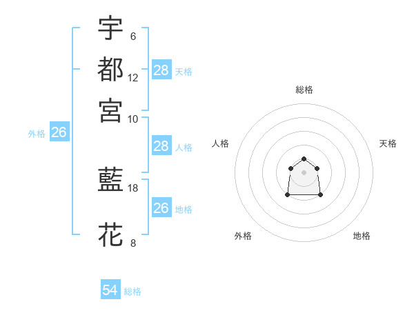 宇都宮 藍花さんの地格は26画の2点!