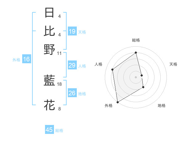日比野 藍花さんを姓名の画数から五運を鑑定