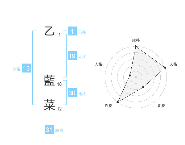 乙 藍菜さんを姓名の画数から五運を鑑定