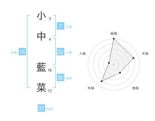 小中 藍菜さんを姓名の画数から五運を鑑定