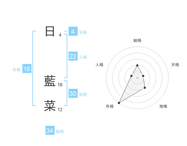 日 藍菜さんの総格は34画の2点!
