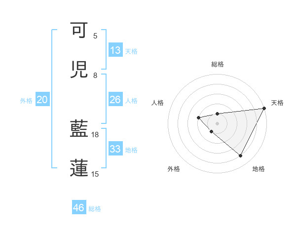 可児 藍蓮さんの総格は46画の1点!