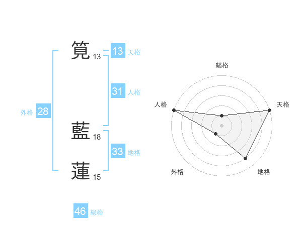 筧 藍蓮さんを姓名の画数から五運を鑑定