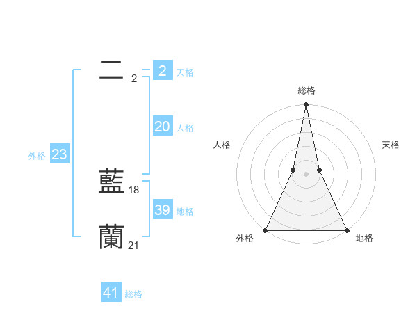 二 藍蘭さんを姓名の画数から五運を鑑定