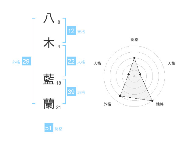 八木 藍蘭さんの総格は51画の3点!