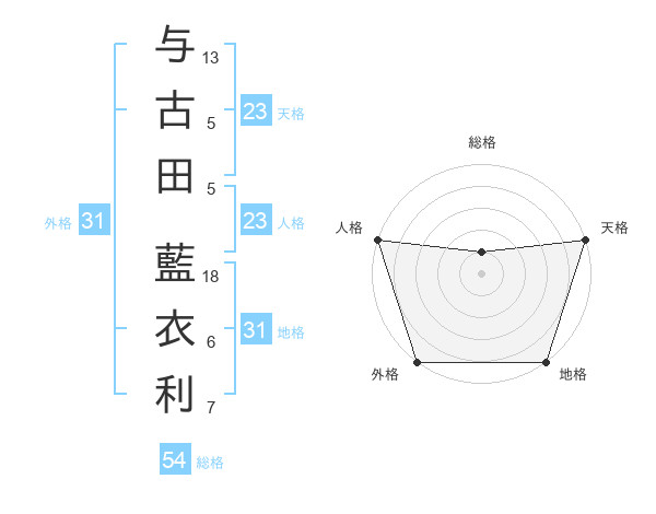 与古田 藍衣利さんを姓名の画数から五運を鑑定