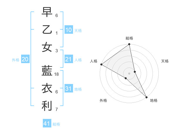 早乙女 藍衣利さんを姓名の画数から五運を鑑定