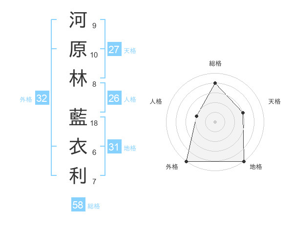河原林 藍衣利さんの総格は58画の4点