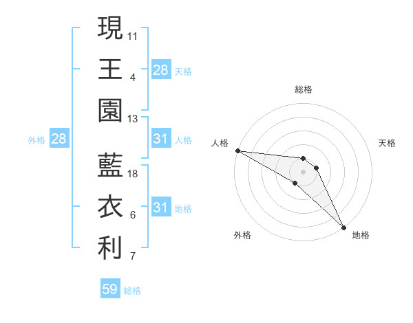 現王園 藍衣利さんを姓名の画数から五運を鑑定