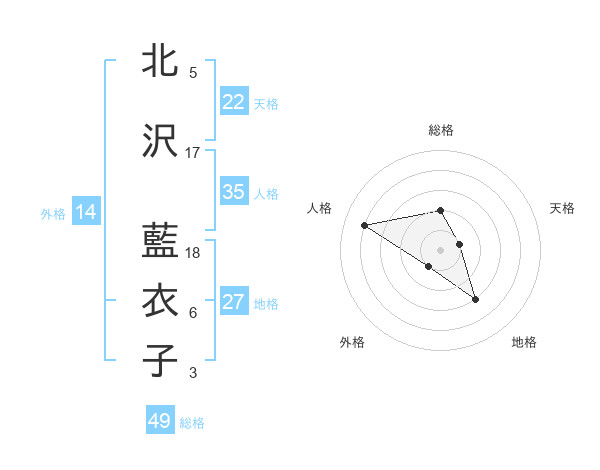 北沢 藍衣子さんを姓名の画数から五運を鑑定