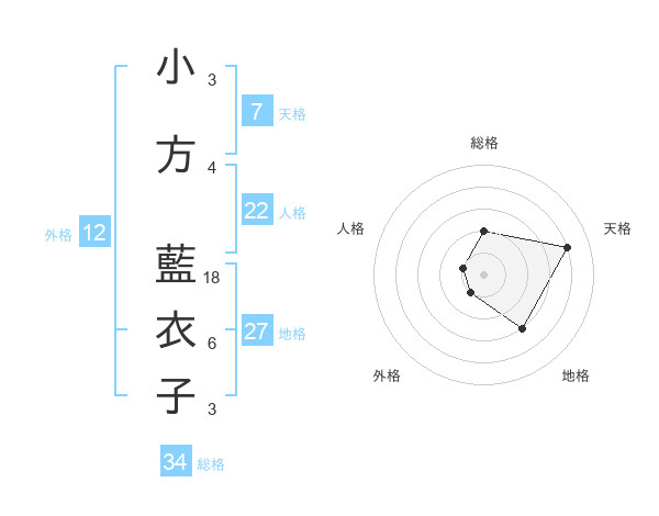小方 藍衣子さんの天格は7画の4点!