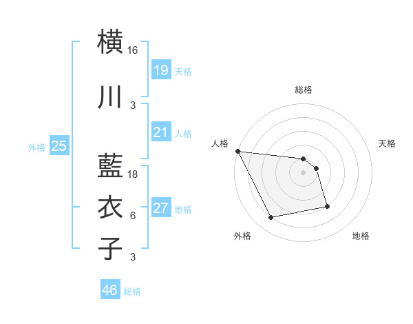 横川 藍衣子さんの地格は27画の3点!