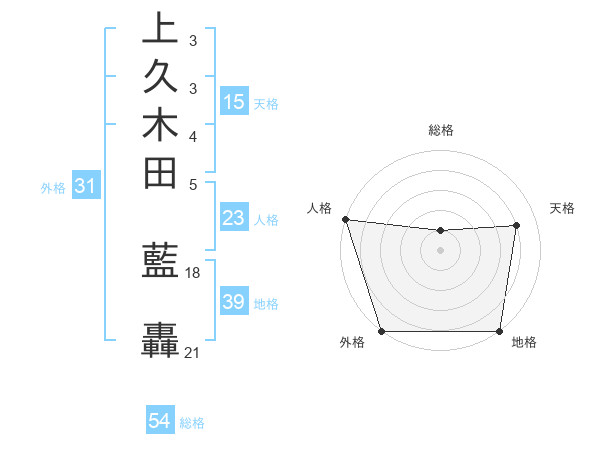 上久木田 藍轟さんを姓名の画数から五運を鑑定