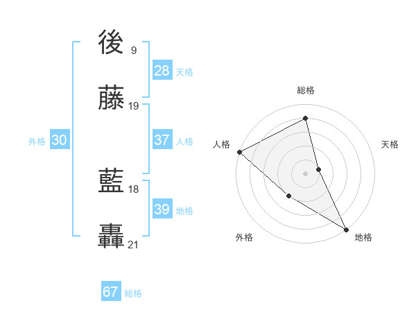 後藤 藍轟さんを姓名の画数から五運を鑑定