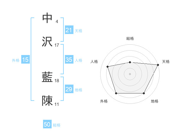 中沢 藍陳さんの総格は50画の2点!