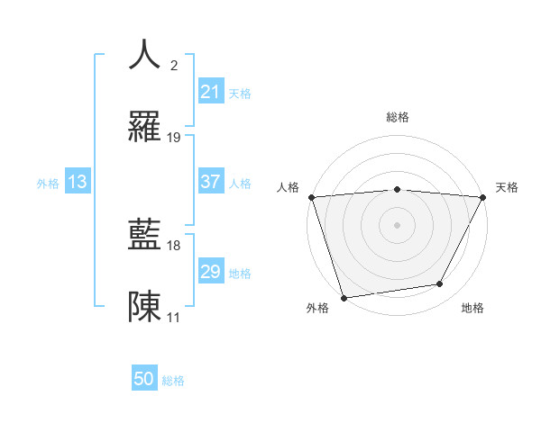 人羅 藍陳さんの総格は50画の2点!