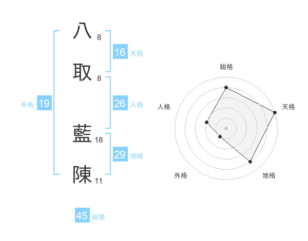 八取 藍陳さんを姓名の画数から五運を鑑定