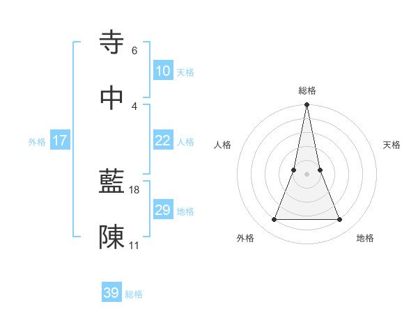 寺中 藍陳さんの総格は39画の5点!
