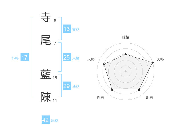 寺尾 藍陳さんの天格は13画の5点!