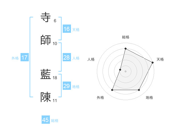 寺師 藍陳さんの総格は45画の4点!
