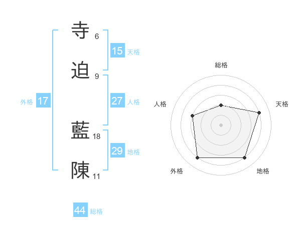 寺迫 藍陳さんの天格は15画の4点!