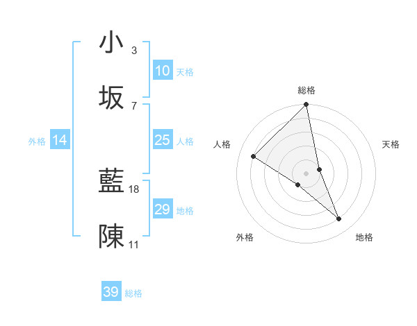 小坂 藍陳さんの総格は39画の5点!