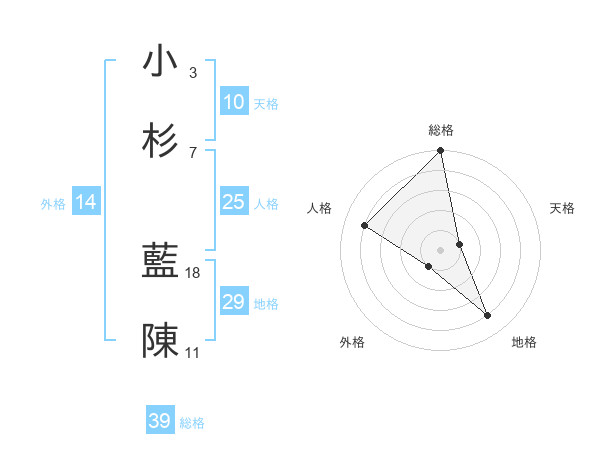 小杉 藍陳さんの総格は39画の5点!
