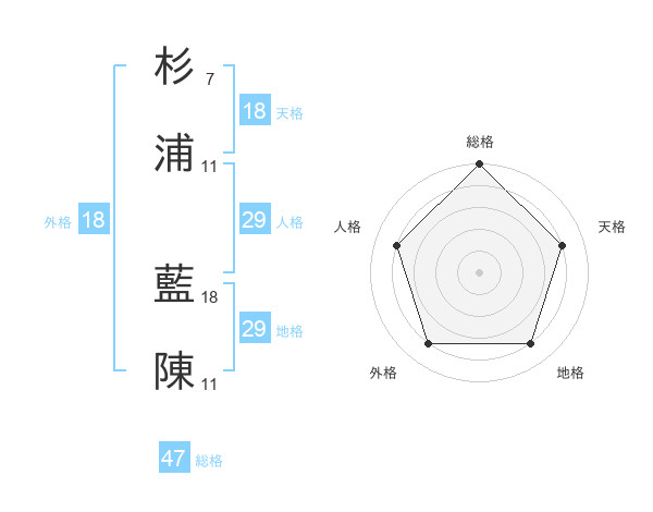 杉浦 藍陳さんを姓名の画数から五運を鑑定