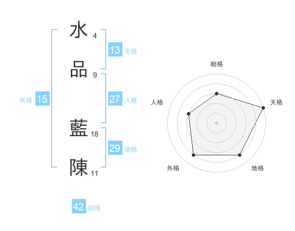 水品 藍陳さんの天格は13画の5点!
