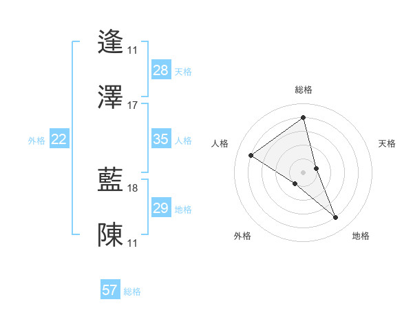 逢澤 藍陳さんの外格は22画の1点!