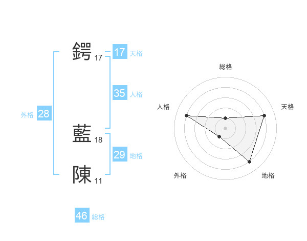 鍔 藍陳さんを姓名の画数から五運を鑑定