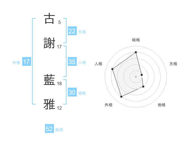 古謝 藍雅さんを姓名の画数から五運を鑑定