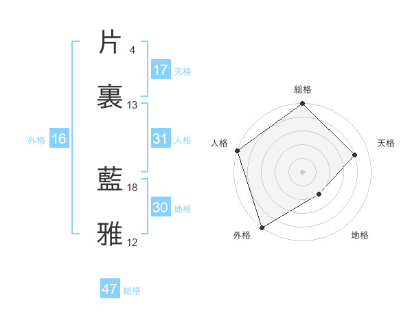 片裏 藍雅さんを姓名の画数から五運を鑑定