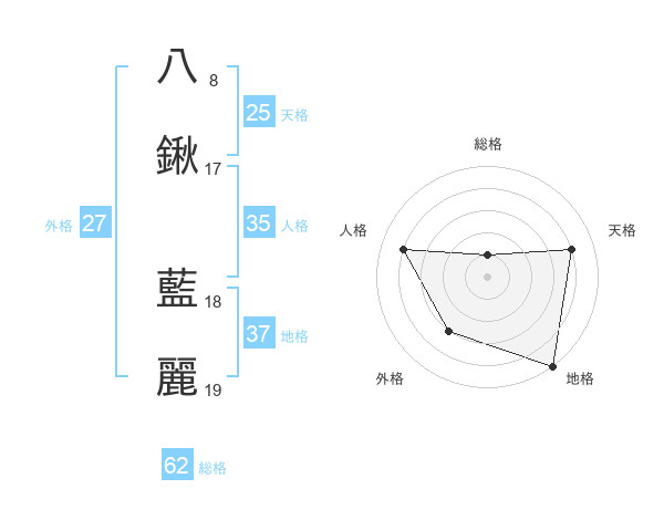八鍬 藍麗さんを姓名の画数から五運を鑑定